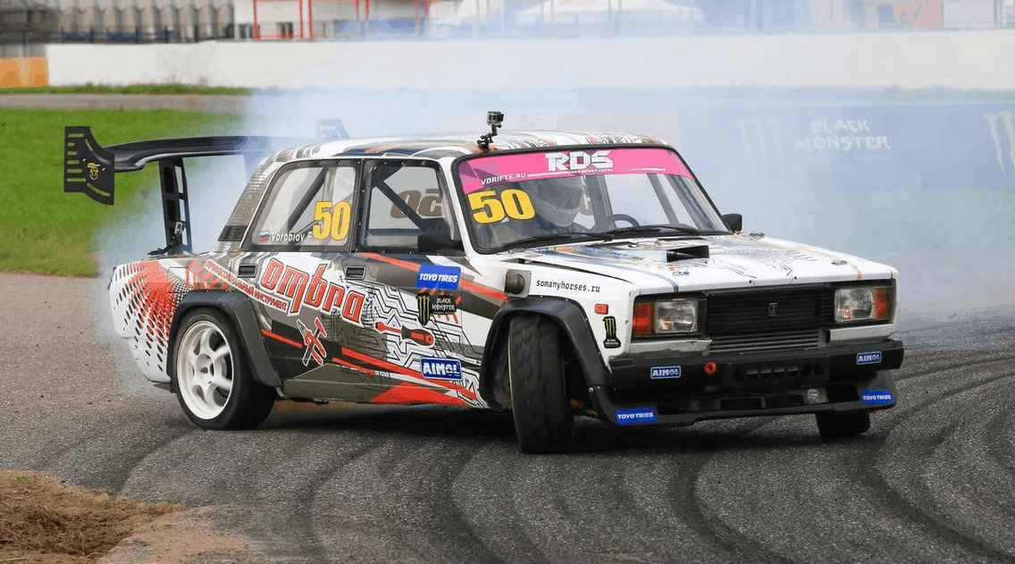 ВАЗ-2105 изготовлен специально для дрифта профессиональным гонщиком. Оснащен специальным турбомотором от иномарки мощностью 600 лошадиных сил. Сквозь “Жигоцарь” (так прозвали автомобиль) лишь слегка прослеживается силуэт привычных жигулей.