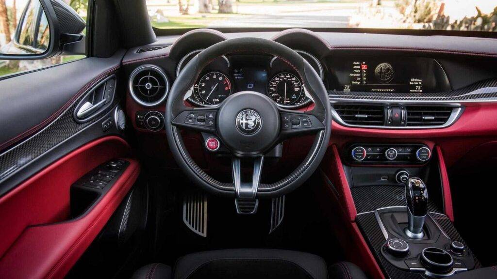 Кремовая кожа, прошитая белыми нитками, смотрится просто великолепно. В тандеме с ореховым деревом она заиграет яркими красками. Общее впечатление просто сногсшибательное. Металлические элементы кузова добавляют ему стилистической эклектики. Не стоит также забывать о том, что Alfa Romeo Giulia простой и интуитивно понятный в эксплуатации. Многофункциональный сенсорный дисплей встроен в приборную панель.