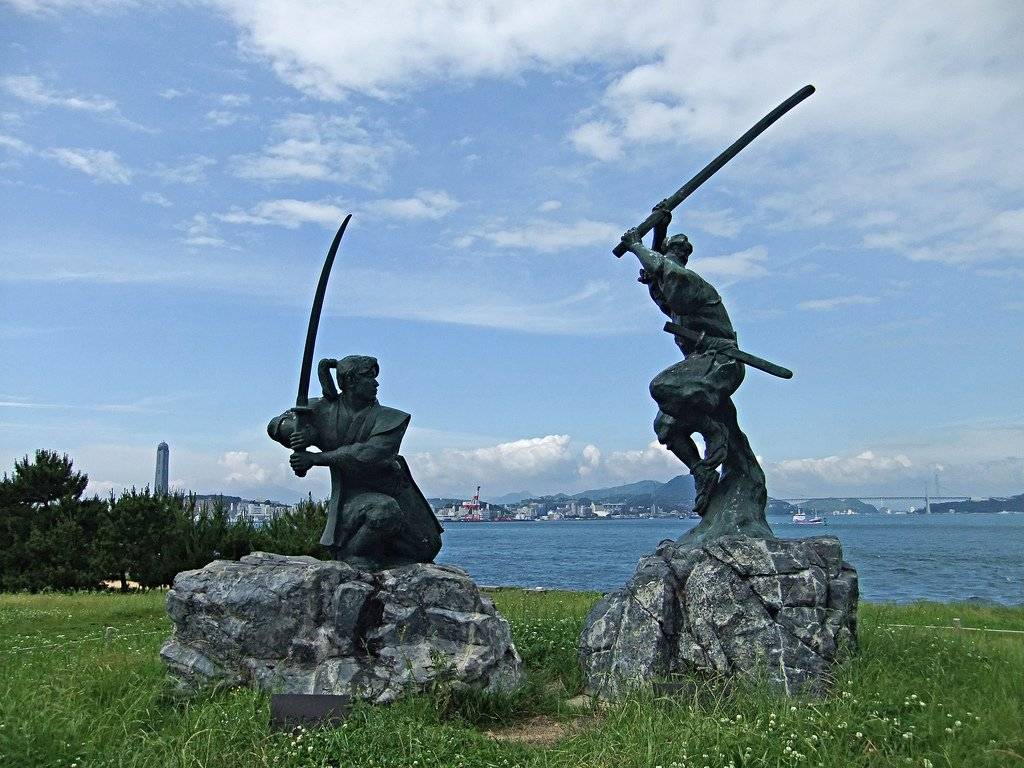 Для поединка было выбрано идеальное место, как будто предназначенное для воспевания подвига Сасаки Кадзиро. Небольшой остров в бурном проливе между Кюсю и Хонсю, в конце концов, действительно назвали в честь Кадзиро, точнее, в честь его школы боевых искусств. По сей день этот песчаный клочок суши посреди океана носит имя Ганрюдзима.