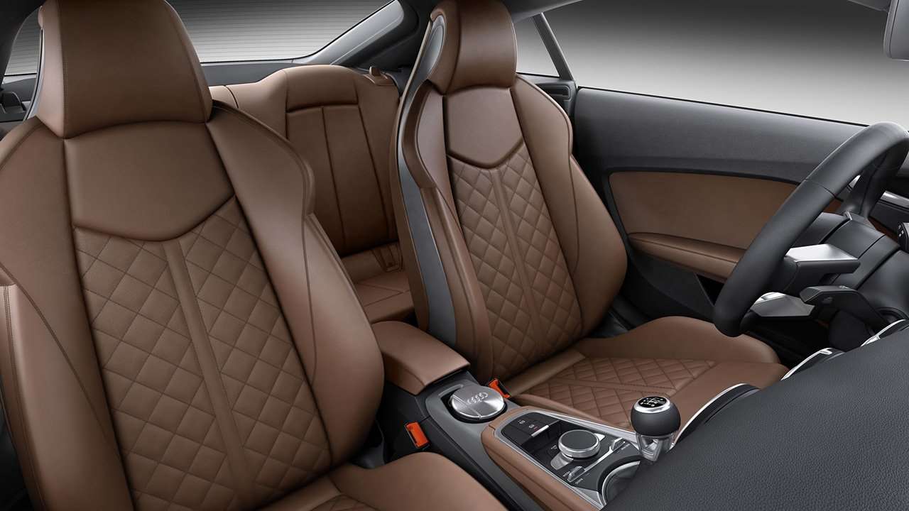 Рассчитывать на ультрасовременную отделку в базе не стоит. Стандартно купе Ауди ТТ продается с обивкой сидений тканью Effect. Опционально предусмотрена отделка кожей или материалом Alcantara. Гораздо больше впечатляет описание салона Ауди ТТ RS с комбинированной обивкой Alcantara плюс кожа с ромбовидной строчкой. Как опция в этой модификации предусмотрен полностью кожаный салон.