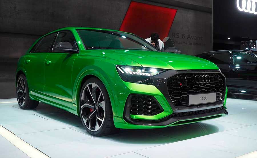 Ещё до официальной презентации Audi RS Q8 успел похвалиться новым рекордом Нюрбургринга в классе SUV. Заводской пилот Фрэнк Стиплер за рулём предсерийной версии сумел проехать круг протяжённостью 20,6 км за 7 мин 42,25 с. Тогда автомобиль был, по сути, без камуфляжа, но с пёстрым чёрно-оранжевым окрасом. Теперь Ауди показала серийную версию «заряженного» паркетника, на этот раз в фирменном ярко-зелёном цвете.