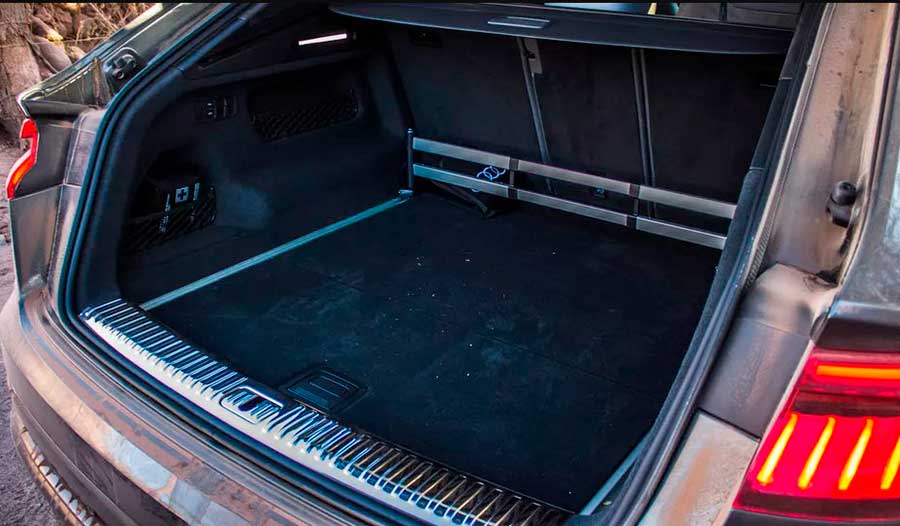 Вид функционального и семейного автомобиля также подчеркивает багажник. Согласно данным, он вмещает 605 литров, но субъективно кажется даже больше. Без проблем вошли в него две большие тележки типа коляска и прочие, необходимые для семейной поездки, и багаж. Мало того — край погрузки на удивление низок, и при необходимости можно опустить всю заднюю часть кнопками, доступными в багажнике (пневматическая регулируемая подвеска). Если добавить к этому широкую, электрически поднимаемую заднюю крышку, то более удобную машину трудно представить. В багажнике мы точно не найдем третий ряд сидений – ведь купе не служит для перевозки множества пассажиров, а дополнительной установкой сидений как-то нужно оправдывать параллельные продажи Audi Q7.