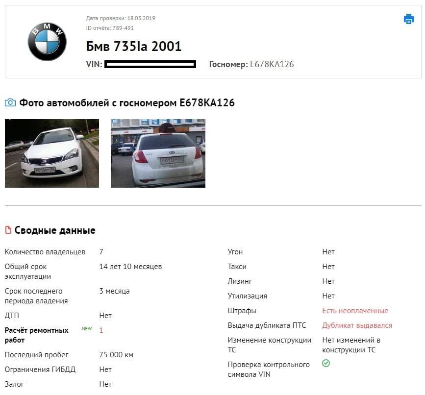 Мы проверили BMW 740i через avtocod.ru и заметили ошибку, допущенную при оформлении документов. Дело в том, что VIN нашего «Бумера» — WBAGG41050DN64944. Однако в недалёком прошлом из-за ошибки компетентных органов с таким же ВИНом было зарегистрировано другое авто марки Kia. Почти с таким же ВИНом — WВAGG41050DN64944.