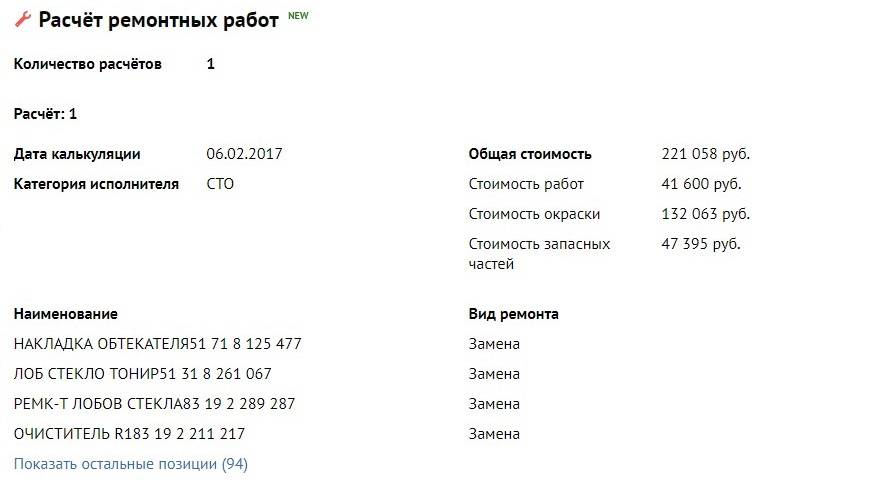 То, что аварию пережил именно «Бумер», подтверждает пункт из списка работ в расчете страховой: