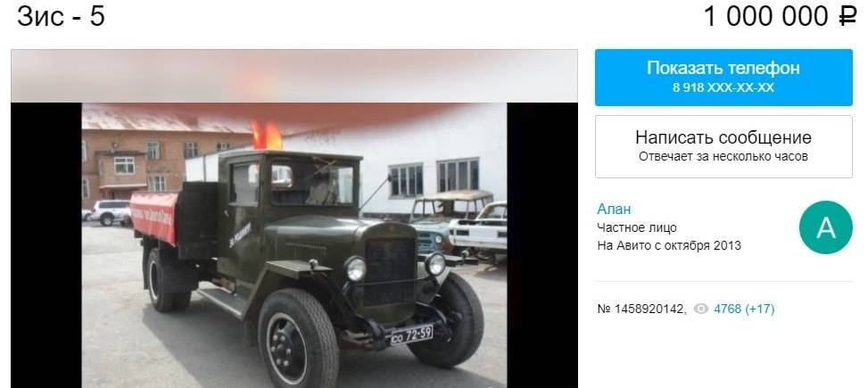 Автомобиль продается в Северной Осетии. Объявление висит с октября 2013 года. Все, что пишет об авто продавец: «Машина времен ВОВ».