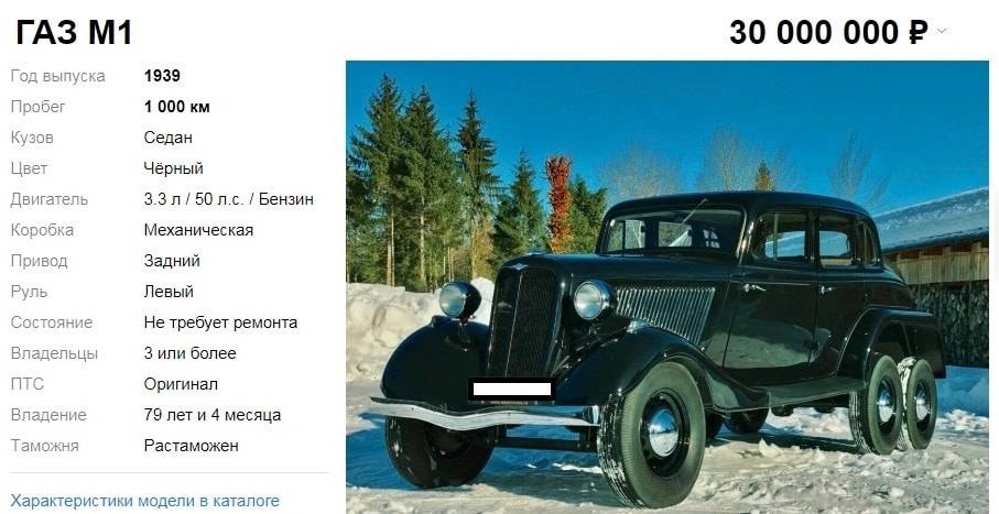За «Эмки» просят от 1 млн рублей. Предельная стоимость зависит от уровня восстановления машины и здравости рассудка продавца. Такое шестиколесное чудо продается за 30 млн рублей: