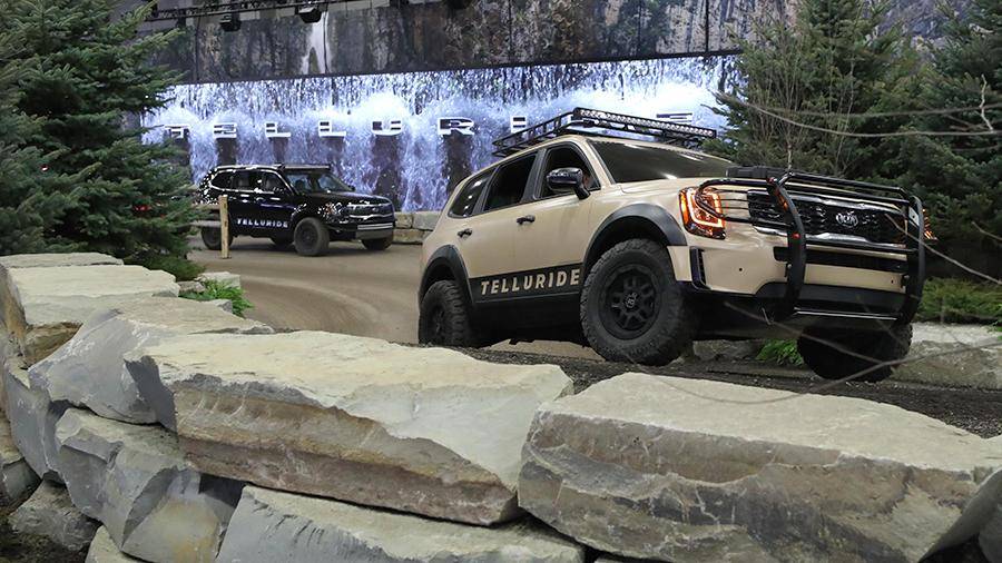 Южнокорейский концерн KIA показал на Детройтском автосалоне свой новый флагман — восьмиместный кроссовер KIA Telluride. Он оснащается 295-сильным 3,8-литровым двигателем V6 и восьмиступенчатым «автоматом». Новый кроссовер будет доступен как в полноприводной версии, так и только с передним приводом.