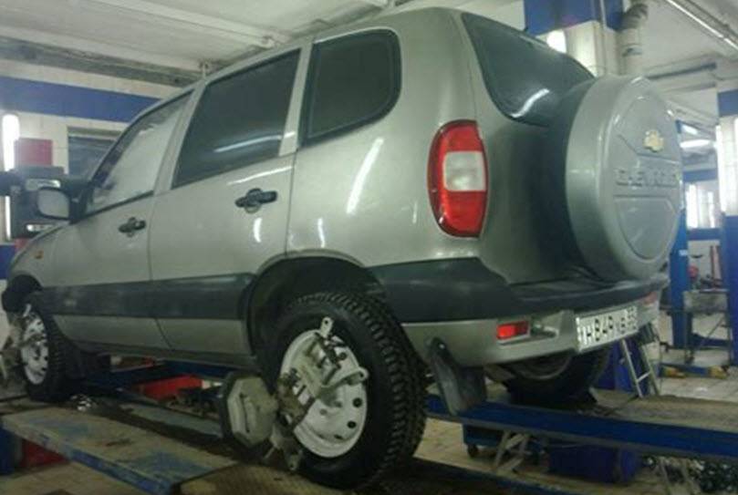 Автомобиль загоняется на яму в гараже и ставится на ручной тормоз, под колеса устанавливаются подпорки.