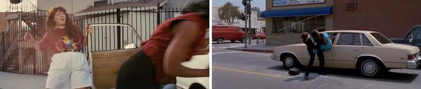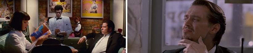 Появление Стива Бушеми в маленьком камео официанта в заведении “Jack Rabbit Slim’s”, уже является жирной отсылкой к прошлой работе Тарантино. И стоить отметить, что в Reservoir dogs его персонаж, Мистер Розовый, долго рассуждает о работе официанток и вспоминает, что сам работал за минимальную заработную плату.