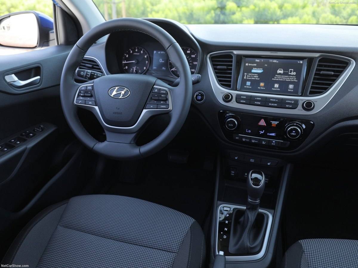 Просторный салон позволяет разместить пятерых взрослых пассажиров без стеснения в ногах или плечах. Все материалы качественные и не выдают бюджетность машин. Дизайнеры выбрали двухцветную отделку, а инженеры неплохо поработали над шумоизоляцией. Крупная приборная панель легко читается. Водитель Соляриса получает цифровой экран с данными и мультируль. Начальные комплектации идут с простой аудио-установкой, которая потом меняется на продвинутую мультимедийную систему.