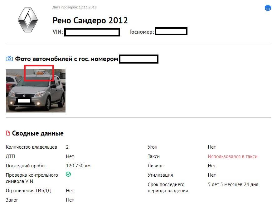 Кроме данных о работе в такси, в отчёте есть фотография машины с данным госномером. На ней изображён «Сандеро» с «таксишными» шашечками на крыше. Совпадение? Не думаем.