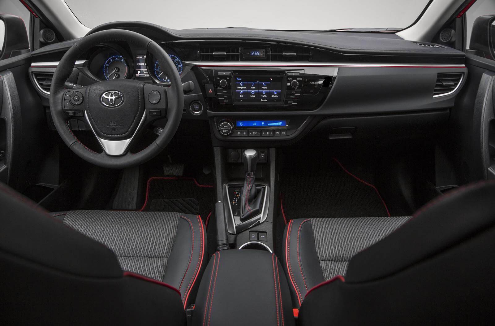 Центральная консоль в принципе типична для «Короллы». Тут по традиции установлен качественный сенсорный экран мультимедийной системы, а чуть ниже расположен блок управления климатом, подогревом сидений и т. д. Приборная панель оснащается тахометром и спидометром, а также 4,2-дюймовым цветным дисплеем, на котором отображается различная полезная информация.