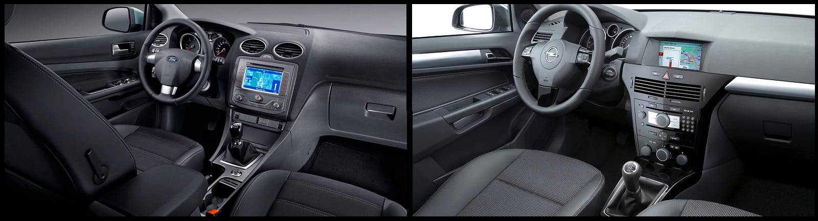 Салон у Астры просторнее Фокуса, но проигрывает в качестве отделки, поскольку имеет много пластиковых деталей. Еще одним из минусов является вызывающая нарекания обзорность у Опеля, которую ограничивают передние стойки.