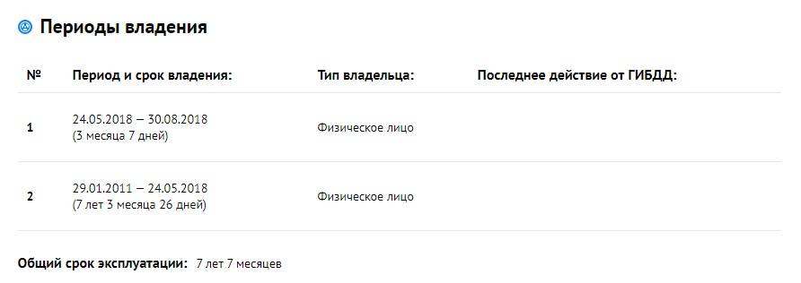 Обратите внимание на окончание срока последнего владения — август 2018 года