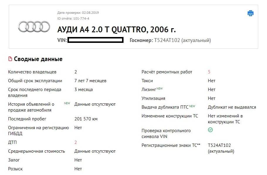 Мы решили узнать, какие проблемы имеются у «Ауди» Ангелины Чумак, и пробили автомобиль через сервис avtocod.ru.