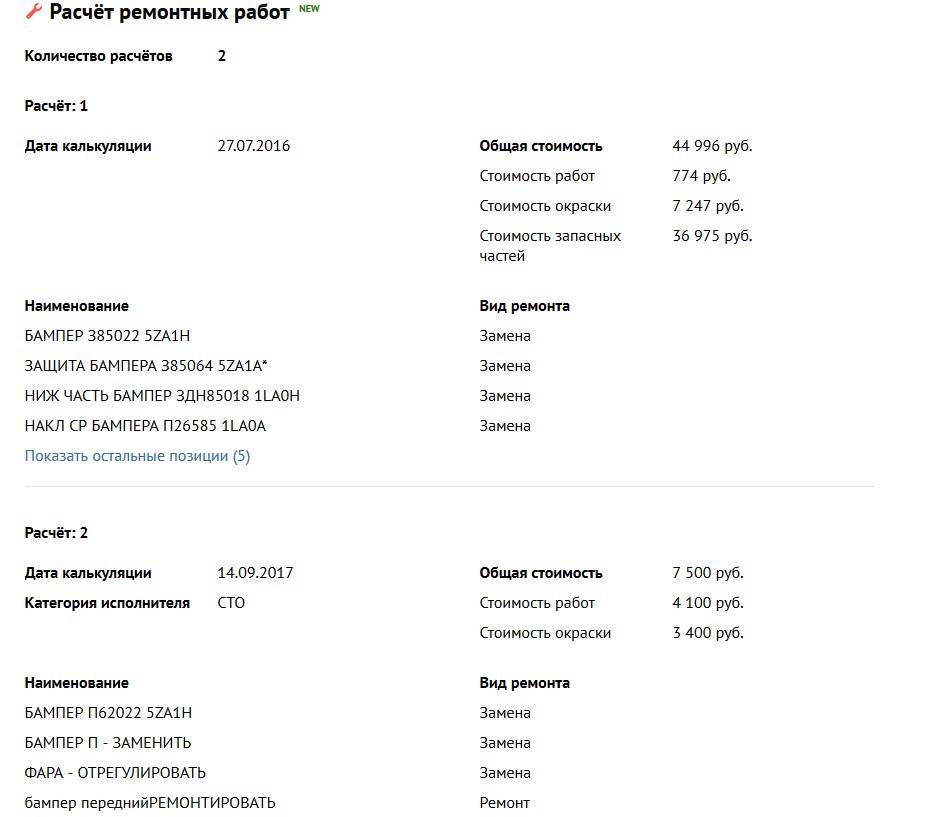 На ремонт пришлось раскошелиться тоже два раза. Исходя из того, что заменены были бампер и фары и расчёт стоимости для «Инфинити» не такой большой, можем предположить, что машина пострадала не сильно.