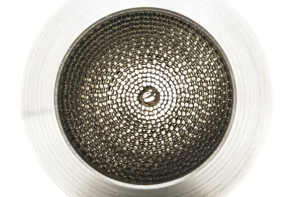 - Внутренний наполнитель – сотовая (сотово-трубчатая) структура, покрытая внутри активным слоем (в качестве каталитического вещества может использоваться платина, платиново-иридиевый сплав, родий, палладий). Сотовая структура позволяет повысить площадь контакта выхлопных газов с активным веществом, а значит, более эффективно провести химические реакции.