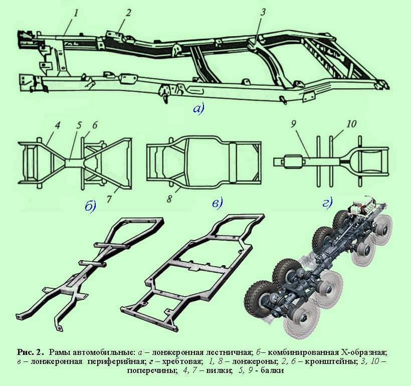 По расположению лонжероны бывают передние и задние, а также они могут огибать всю конструкцию машины. Лонжероны внутри – пустотелые.
