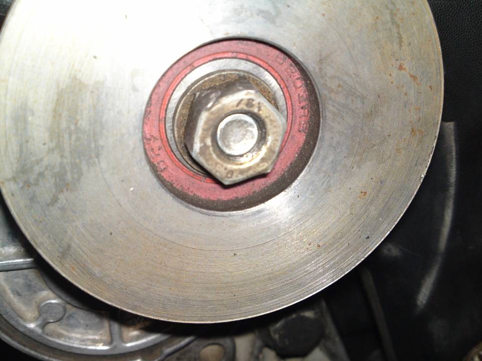 Насос пока ещё рабочий, но в крайних положениях руля, он у меня подвывал. На замену денег пока нет, да и выкидывать насос, который ещё работает, глупо. Навесил и генератор. Отдельный разговор о натяжителе и его ролике. Когда то давно, в дороге, ролик натяжителя у меня сломался. Заменил я его на то, что попалось в станичном магазине, — на ролик от газели. Приехав в Волгодонск, стал искать правильный ролик, но не нашёл. По заказу, доставка занимала больше двух недель, а мне там быть всего неделю. Было принято решение заказать ролик у токаря. И он выточил по образцу, офигенный, зашибатый ролик. Со сменным подшипником.