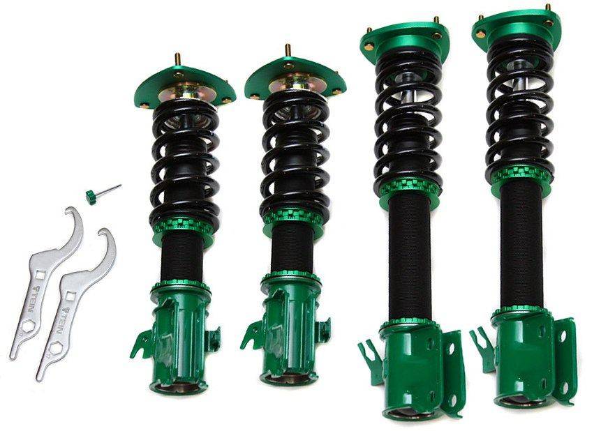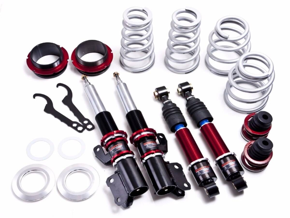 Их еще называют койловерами или винтовыми подвесками. Выполнены в виде амортизационных стоек, у которых можно настраивать степень жесткости непосредственно на машине. Нижняя часть пружины имеет резьбовое соединение, и это позволяет менять ее вертикальное положение, а также настраивать размер дорожного просвета.