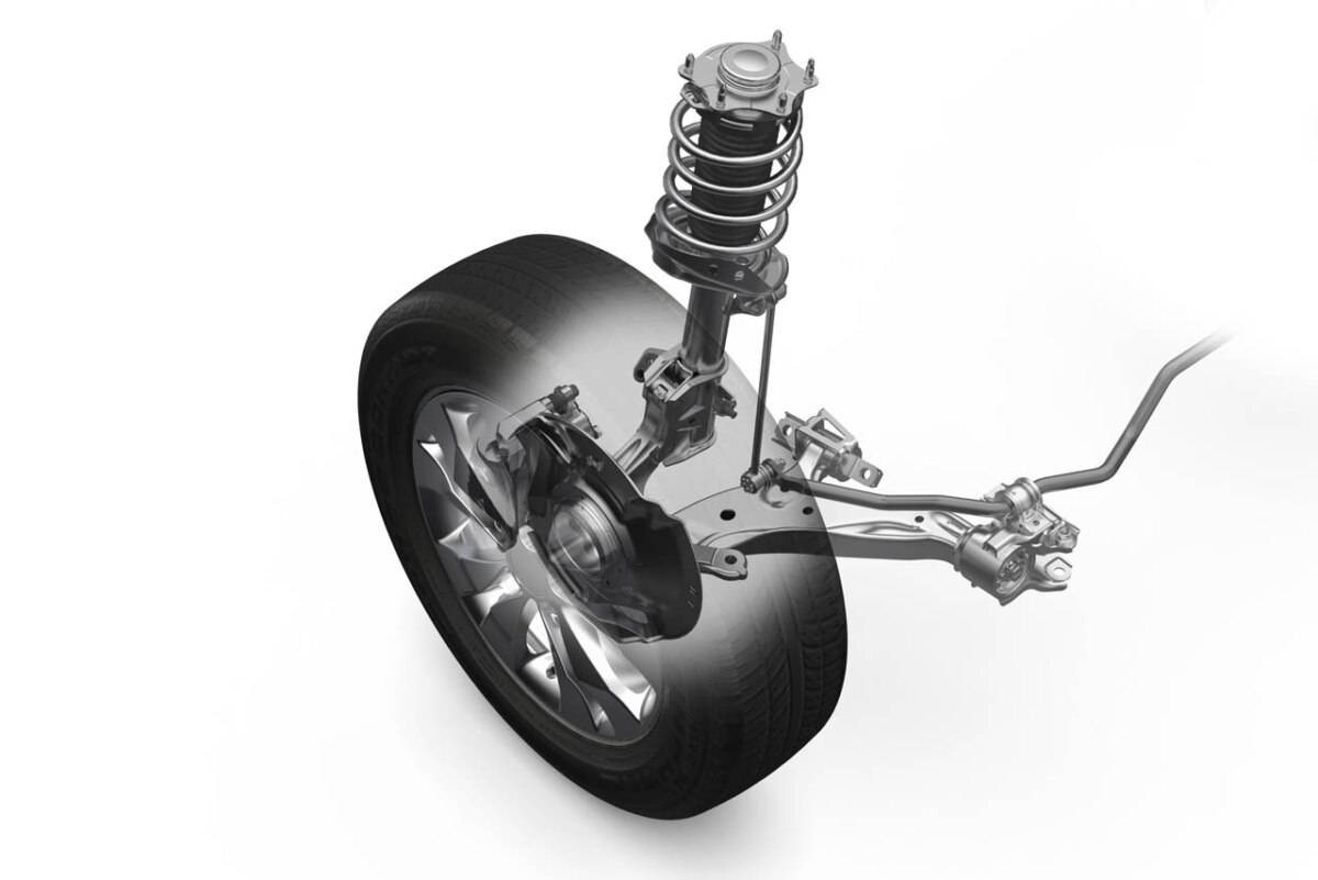 Основным элементом в схеме подвески, как уже говорилось выше, является амортизирующая стойка Макферсон, она оснащена соосно пружиной и собственно, стойкой. Основное крепление осуществляется с помощью поворотного шарнира, который крепится к крылу.
