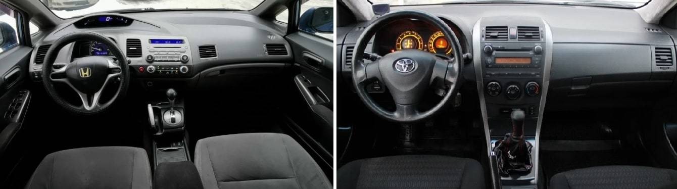 По багажнику выигрывает «Королла». Туда помещается 450 л груза, в багажник «Цивика» — 385 л. Да и интерьер у «Тойоты» выглядит привычнее, нежели у «космического» Civic. Хотя надо отдать должное «Хонде»: приборы здесь читаются отлично.