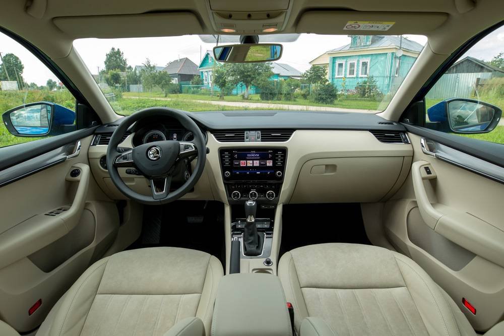 Skoda в этом плане не только кажется просторнее, но и является таковой. Центральная консоль размещена достаточно далеко от водителя. Кресла отлично фиксируют тело и являются достаточно жесткими, как это любят немецкие производители. Заднее сидение и размеры салона позволяют ехать с комфортом даже людям с высоким ростом.