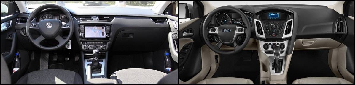 Салон Skoda Octavia выполнен интересно и богато, здесь есть большое количество нововведений, которые нельзя было увидеть у версии Тур. Тем не менее, в салоне оказалось достаточно тесно, что отдает преимущество Ford Focus.