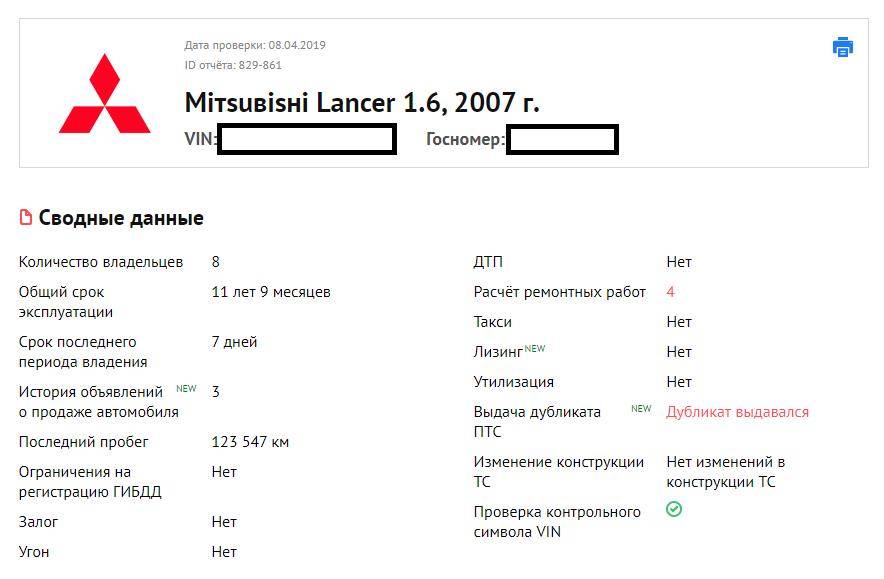 Автомобилю выдан дубликат ПТС, но в данном случае это некритично. У «Лансера» было восемь владельцев, и в оригинальном документе не осталось места для внесения записей.