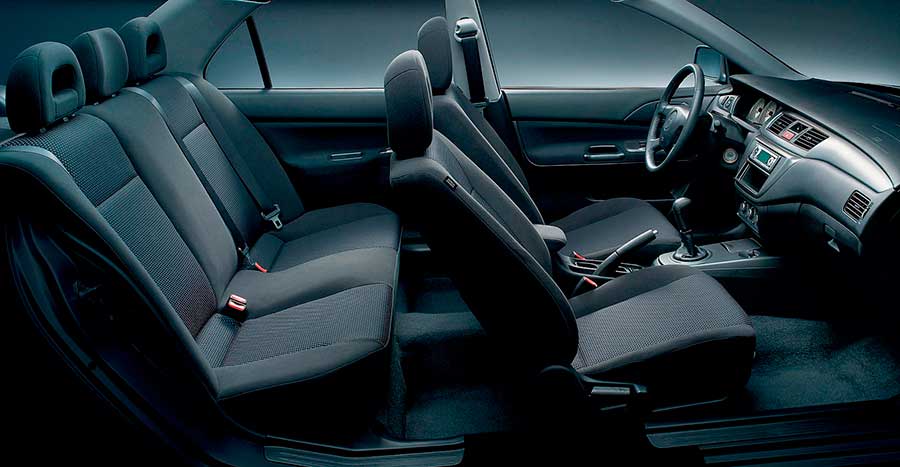 Mitsubishi Lancer обладает достаточно длинной колесной базой – 2600 мм. Как и современные автомобили Голф-класса, Лансер 9 внутри достаточно просторный. Даже пассажиры на заднем сиденье не могут пожаловаться на нехватку места. Не разочарует и багажник объемом 430 литров.