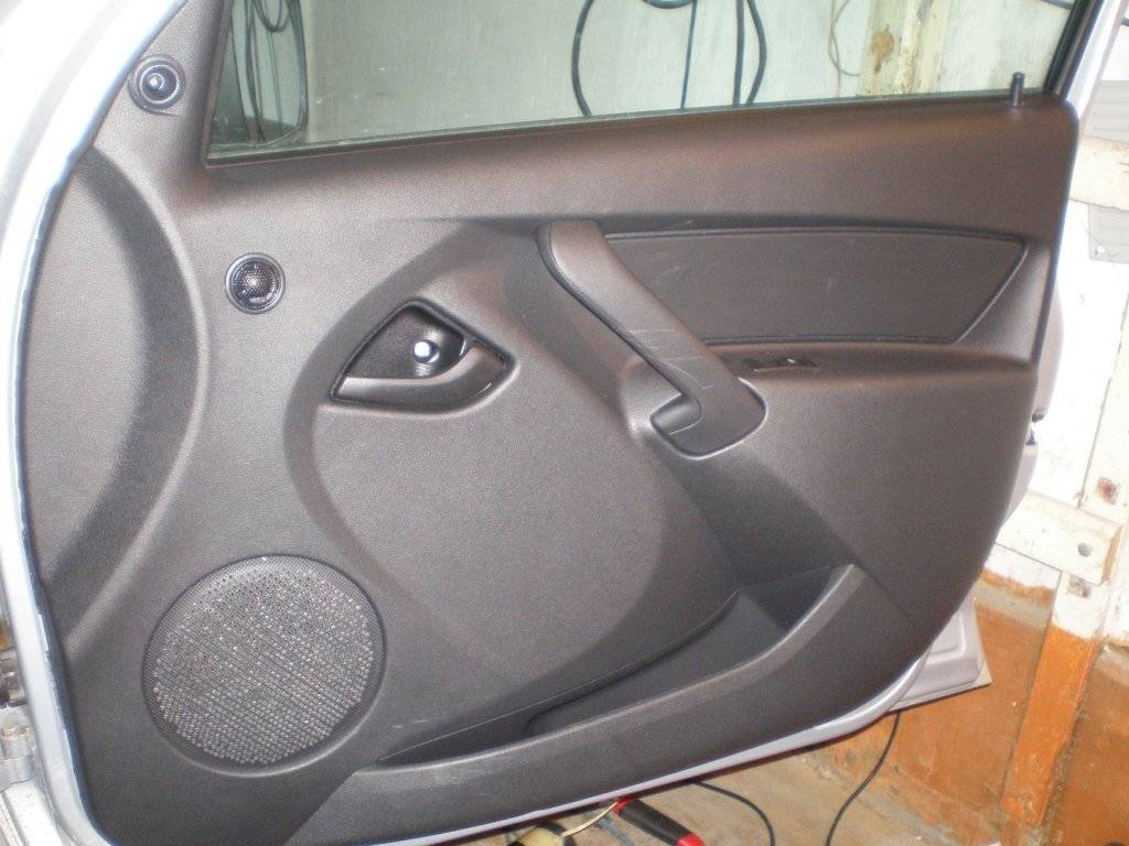Кстати, на данном этапе проведения работ можно попутно заняться звукоизоляцией дверей, проклеив плоскости соответствующим материалом.Проверяем динамики и их звучание обязательно еще в несобранном виде двери. Если где-то что-то подсоединено не так, то можно быстро все поправить, а потом уже окончательно собрать. В противном случае придется снова демонтировать обшивку.Финал: установка динамиков в задние двери Лада Гранта подходит к концу. Собираем двери, ставим на место обшивку и ручки, прикручиваем все на места. Кстати, возможны несовпадения по размерам: именно для этого в процессе работы нужно все неоднократно примерять. Если обнаружены несоответствия, и обшивка или ручка не хотят становиться на свои прежние места, то придется разбирать и снова подгонять детали.