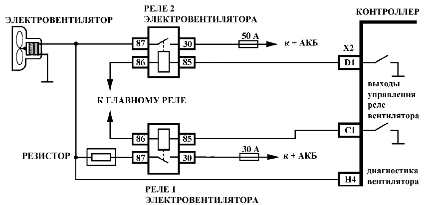 Работа электровентилятора только на высокой скорости вращения — Главный признак того, что дополнительный резистор вентилятора охлаждения “Калина” неисправен. Электросхема подключения вентиляторов ЛАДА “Калина” предусматривает одновременное включение двух систем обдува: