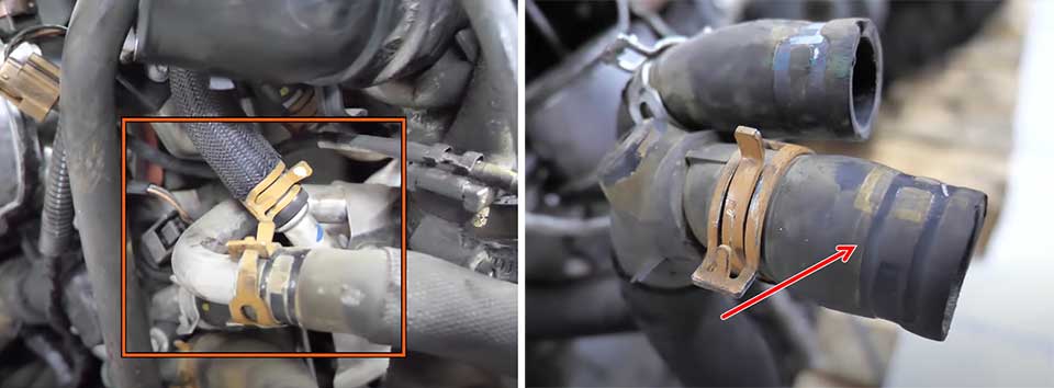И многочисленных хомутах, крепящих патрубки. Наличие на патрубке отметины говорит о том, что он вскрывался.