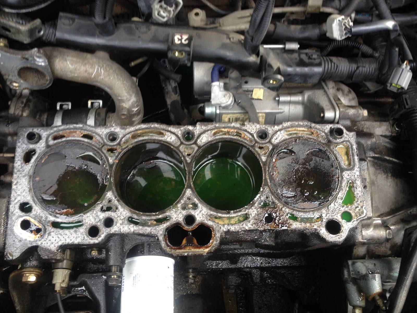 Попадание охлаждающей жидкости в цилиндр, может быть вызвано образованием трещин в блоке или головке цилиндров. Еще одной распространенной причиной такого явления может быть поврежденная прокладка.