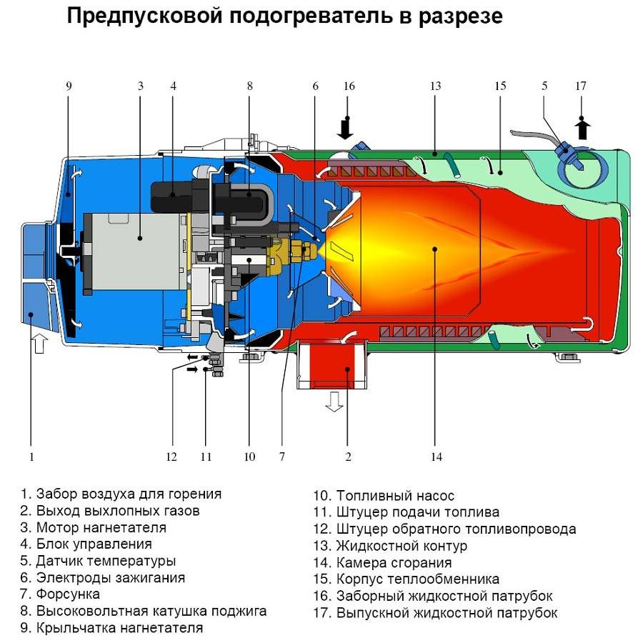 Принцип работы автономного подогревателя двигателя достаточно прост: