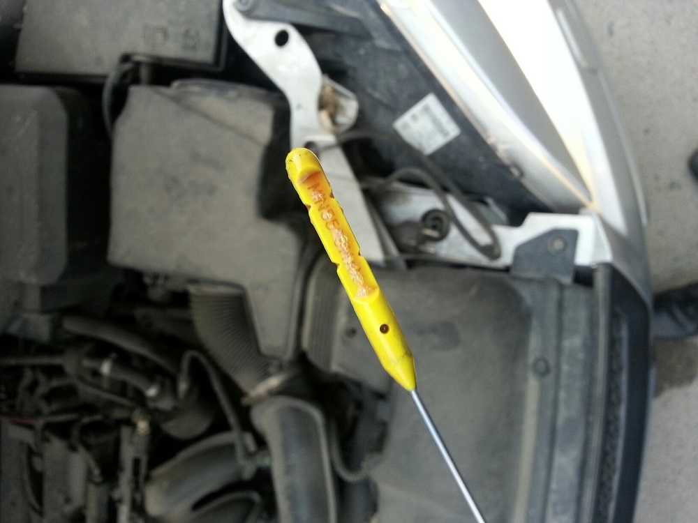 Открываем капот и находим щуп трансмиссии, обычно он располагается примерно в том же районе, что и щуп двигателя. Посему не перепутайте! Выньте щуп АКПП, протрите его чистой тряпочкой, после чего вставьте щуп обратно до упора и вновь извлеките.