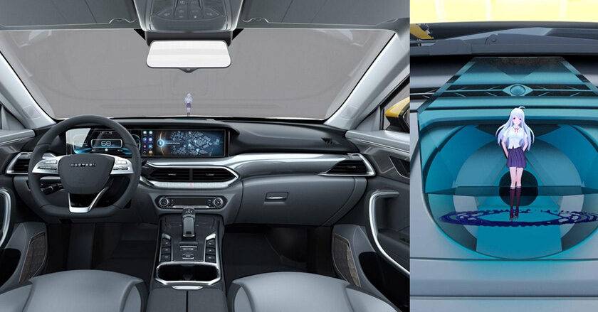 Салон нового кроссовера у которого есть одна интересная функция в виде голосового помощника, то есть голосовой помощник в виде голограммы.