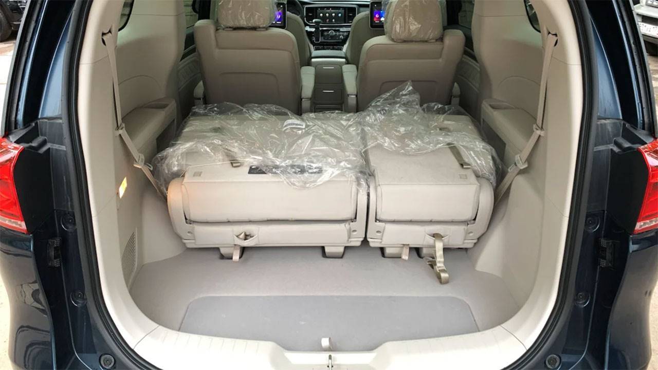 Отделка сидений выше всяческих похвал. Выглядит она просто замечательно. Кресла минивэна мягкие, с хорошей боковой поддержкой и подогревом. При этом передние сиденья имеют дополнительно и вентиляцию, и электропривод регулировки положений. Объем багажного отделения пока неизвестен, но учитывая габариты авто, можно предположить, что багажник здесь очень большой.