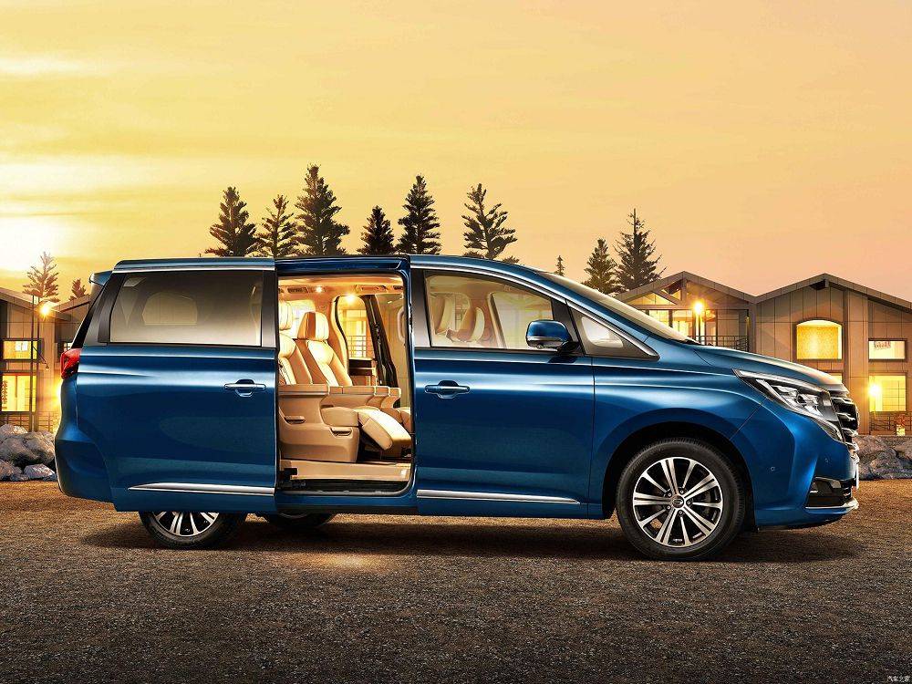 В профильной проекции минивэн GAC GM8 2019 смотрится более скромно и функционально. В поле зрения типовая компоновка кузова с плоской крышей, удлиненным до багажника боковым остеклением, прямолинейная геометрия дверных проемов.
