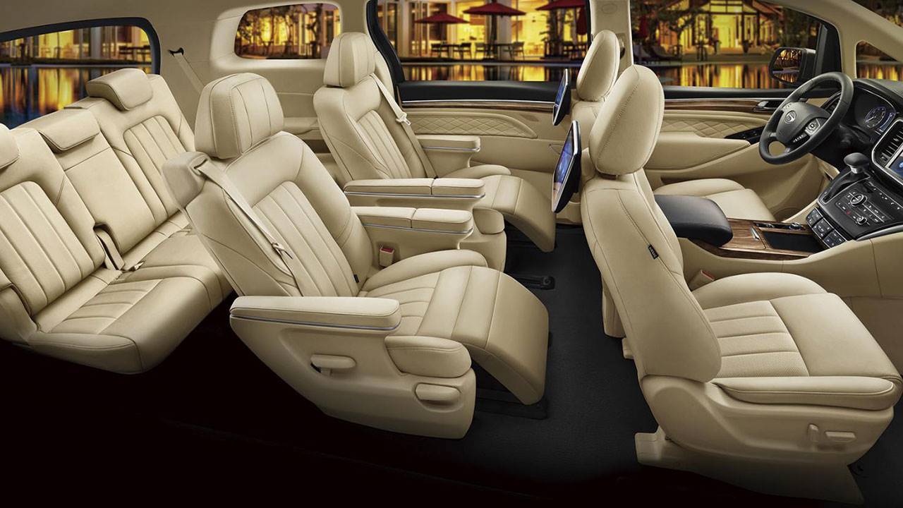 В интерьере авто доминируют светлые тона. Здесь использованы качественные материалы, такие как металл, кожа и пластик «под древесину». Передняя панель выведена очень красиво. Такое ощущение, что китайский производитель нанял первоклассного дизайнера для создания салона своего автомобиля.