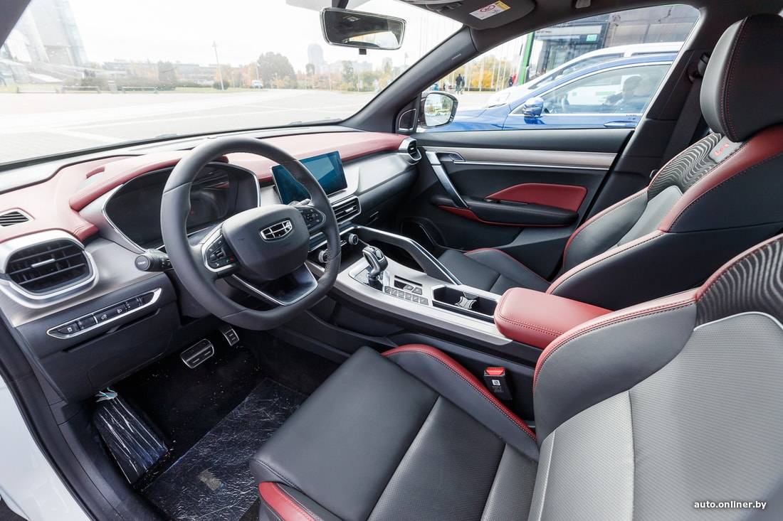 Сам же интерьер Geely Coolray никак не выдает китайское происхождение, аналогично, как экстерьер автомобиля. Передние сиденья выполнены в спортивном стиле, с высокой спинкой и хорошей боковой поддержкой. Регулировка передних сидений может быть как механической, так и электрической, но в обоих случаях доступно только 6 направлений, что не так много для современных автомобилей.