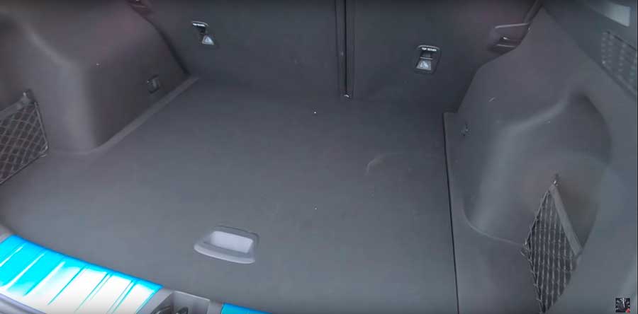 Электропривод багажной двери у этого кроссовера отсутствует, но есть внутренняя ручка для закрывания, разумеется, предусмотрены и пневматические упоры. Средняя высота подъема дверцы довольно высокая и удобная, внутри багажника по бокам имеются сеточки для всевозможной мелочи, крючки для фиксации грузов, на левой обшивке расположен фонарь подсветки.
