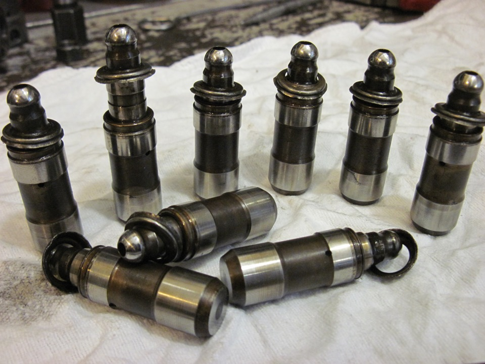 Если вы произвели демонтаж гидрокомпенсаторов, попробуйте их промыть в бензине, предварительно выполнив их разборку. После очистки проверьте их на работоспособность нажав на плунжер пальцем, и если он исправен, то вернётся в исходное положение.