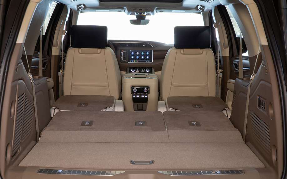 Увеличив колесную базу до 127 мм и общую длину до 155 мм, новое поколение Yukon 2021 порадует просторный салон, багажник и дополнительные нагрузки. Во втором ряду обувь увеличилась на 41 процент. Багажное отделение в Denali и AT4 составляет 722 литра в трехрядной версии и 3480 литров в обычной версии. Длинный XL, хотя и трехуровневый, поразит вас своей емкостью 1164 литра. А максимально возможный объем багажника составляет 4097 литров. Это на 66% больше, чем в текущей версии. В обеих версиях доступ к грузовым зонам был более удобным, так как нижний и ровный этажи были сделаны в багажнике.
