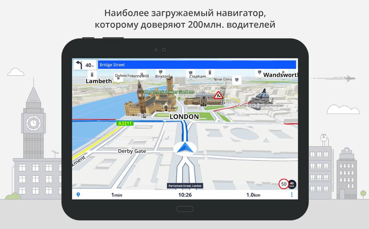 Открывает наш топ бесплатный GPS навигатор Sygic, являющийся одним из лучших решений для оффлайн-навигации. Помимо качественных автономных карт здесь имеется точная система отслеживания заторов, пешеходный режим, актуальная информация по парковочным местам, а также подсчёт времени прибытия на место назначения. Из интересных фишек Sygic может похвастаться технологией Head-up Display, посредством которой изображение проецируется на стекло автомобиля, позволяя использовать навигатор не отвлекаясь на экран телефона. Никаких дополнительных аксессуаров для этого не требуется.