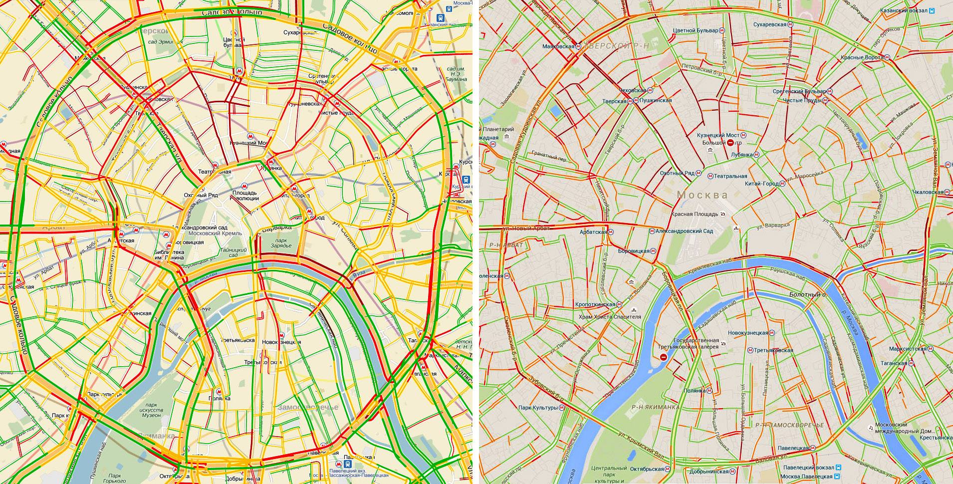 Прежде всего, что для одного сервиса – зеленый уровень пробок, для другого желтый. Нет единых стандартов.
