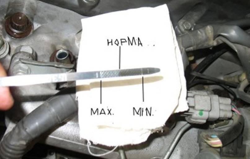 Если уровень масла находится на критической отметке, требуется долить жидкость, однако так, чтобы её уровень не превышал значение Max.