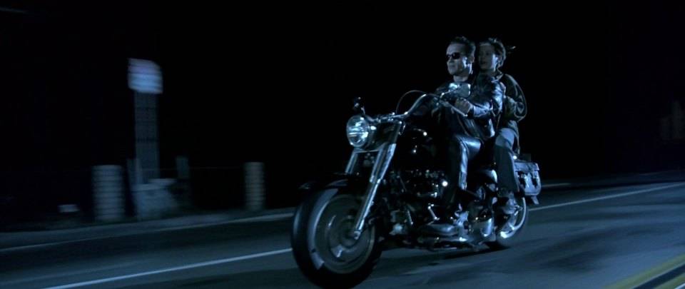 Кадр с мотоциклом Harley-Davidson FLSTF Fat Boy из фильма «Терминатор 2: Судный день» 1991 года