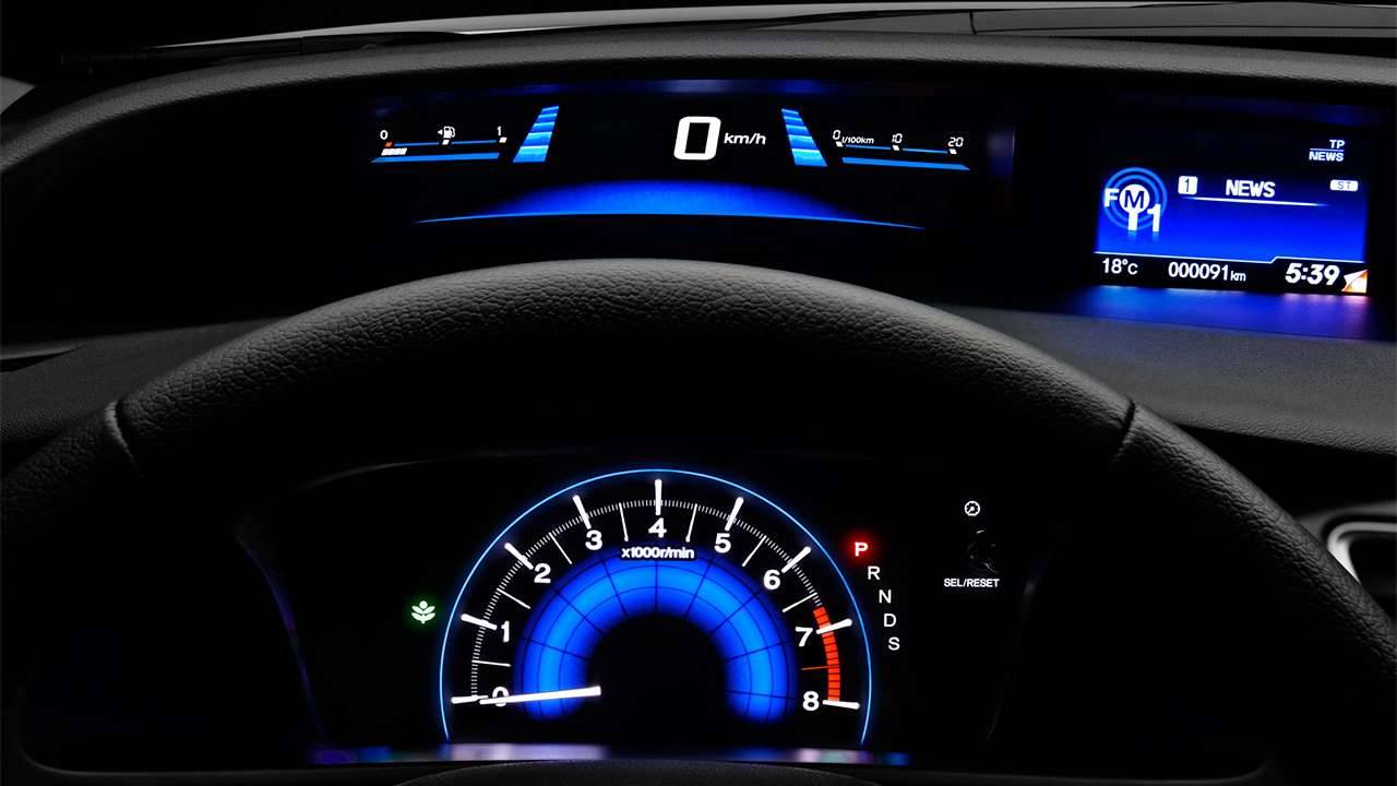 Все оборудование окружает водителя. В его руках находится 3-спицевый мульти-руль с кнопками управления музыкой и круиз-контролем. Щиток приборов за рулем – отдельная история. Продолжена традиция двухуровневой приборки, правда теперь полностью электронной. Нижний дисплей имитирует аналоговый тахометр, верхний показывает скорость, температуру двигателя и уровень топлива. Второй уровень сделан шире, для установки небольшого дисплея аудиосистемы.