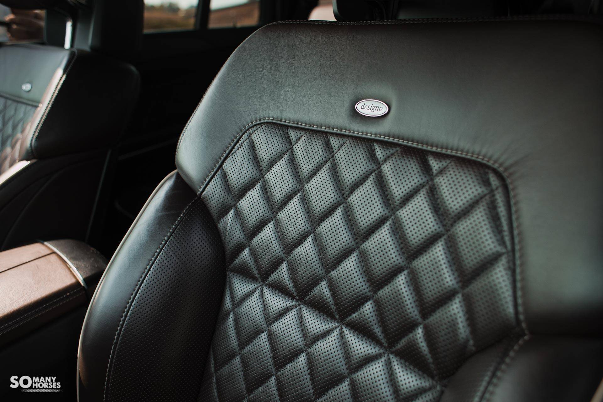 Интерьер GL500 изобилует роскошной кожей в абсолютно любом месте, до которого может дотянуться ваша рука. К слову, кожей отделан даже кожух рулевой колонки, который становится визуально заметным лишь при опускании руля по углу наклона. Однако, износостойкостью салон «похвастать» не может. Подушка сиденья водителя покрылась трещинами и потертостями уже при пробеге в 80 000 километров. А краска с руля начала облазить еще через пять тысяч.